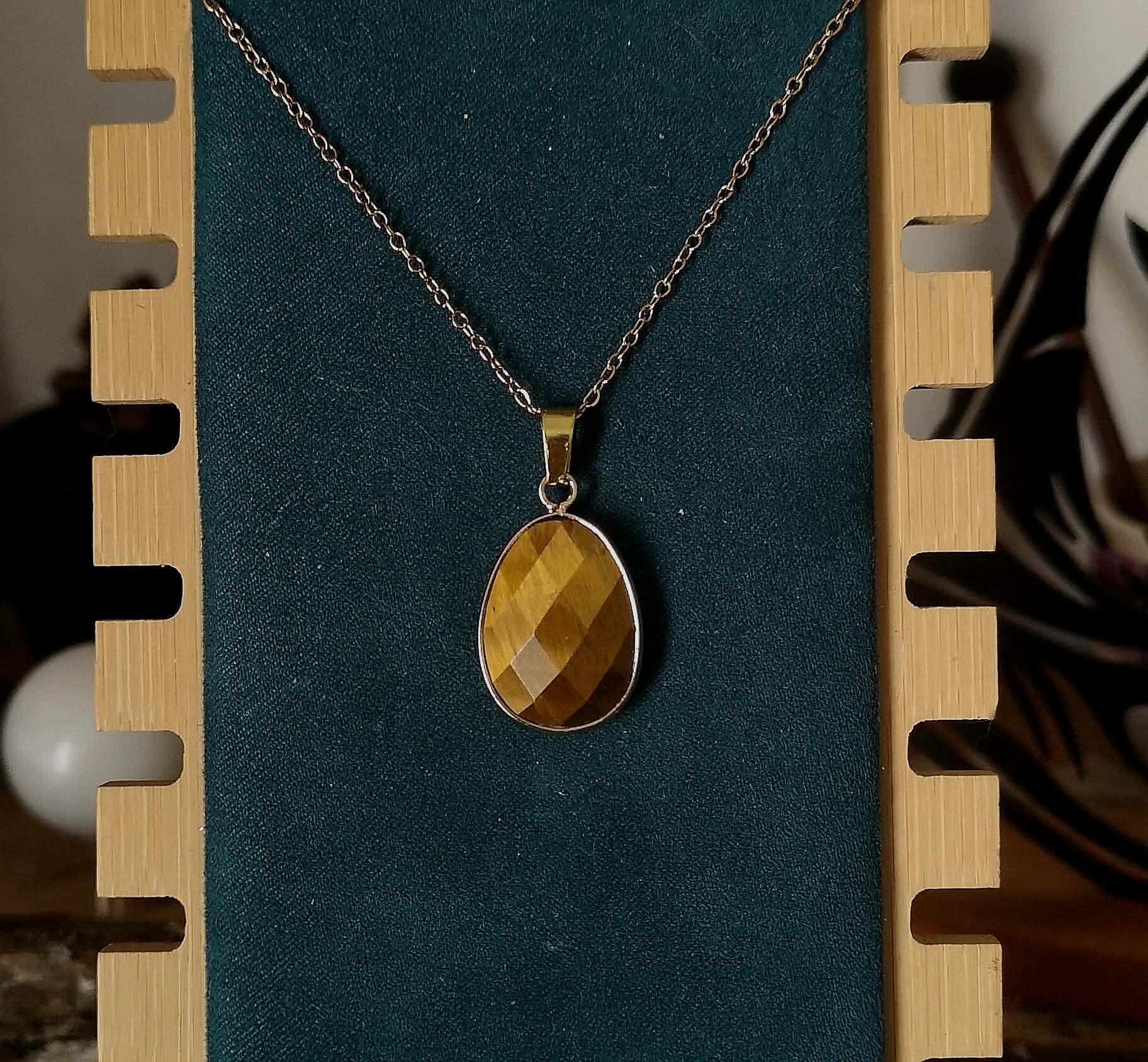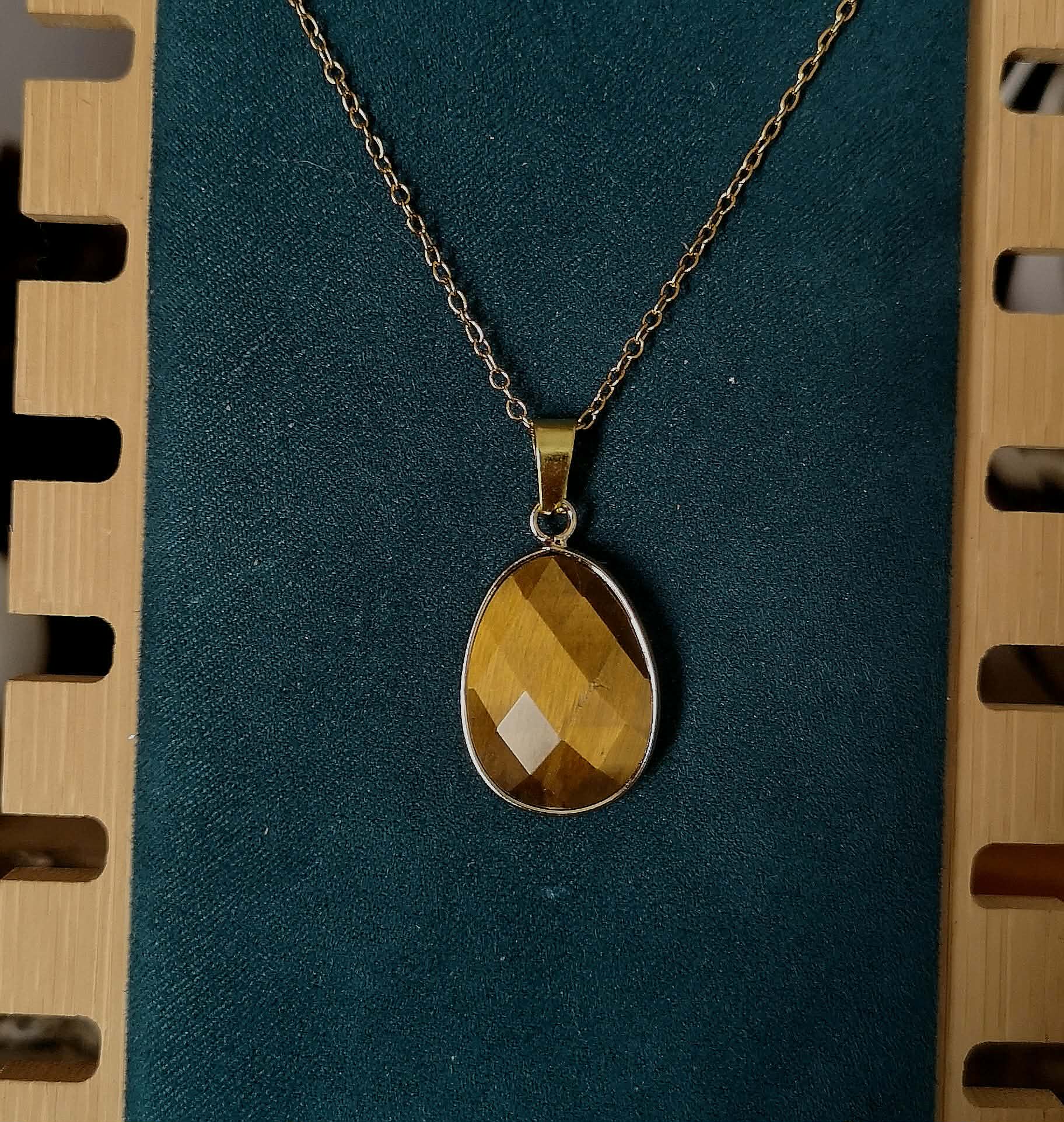 L’œil de tigre est l’une des pierres les plus prisées en lithothérapie, reconnue pour ses reflets soyeux dorés et ambrés qui semblent capturer la lumière du soleil. Taillé en facettes, ce pendentif révèle tout le chatoyement naturel de la pierre, offrant un jeu de lumière envoûtant qui ne laisse personne indifférent.