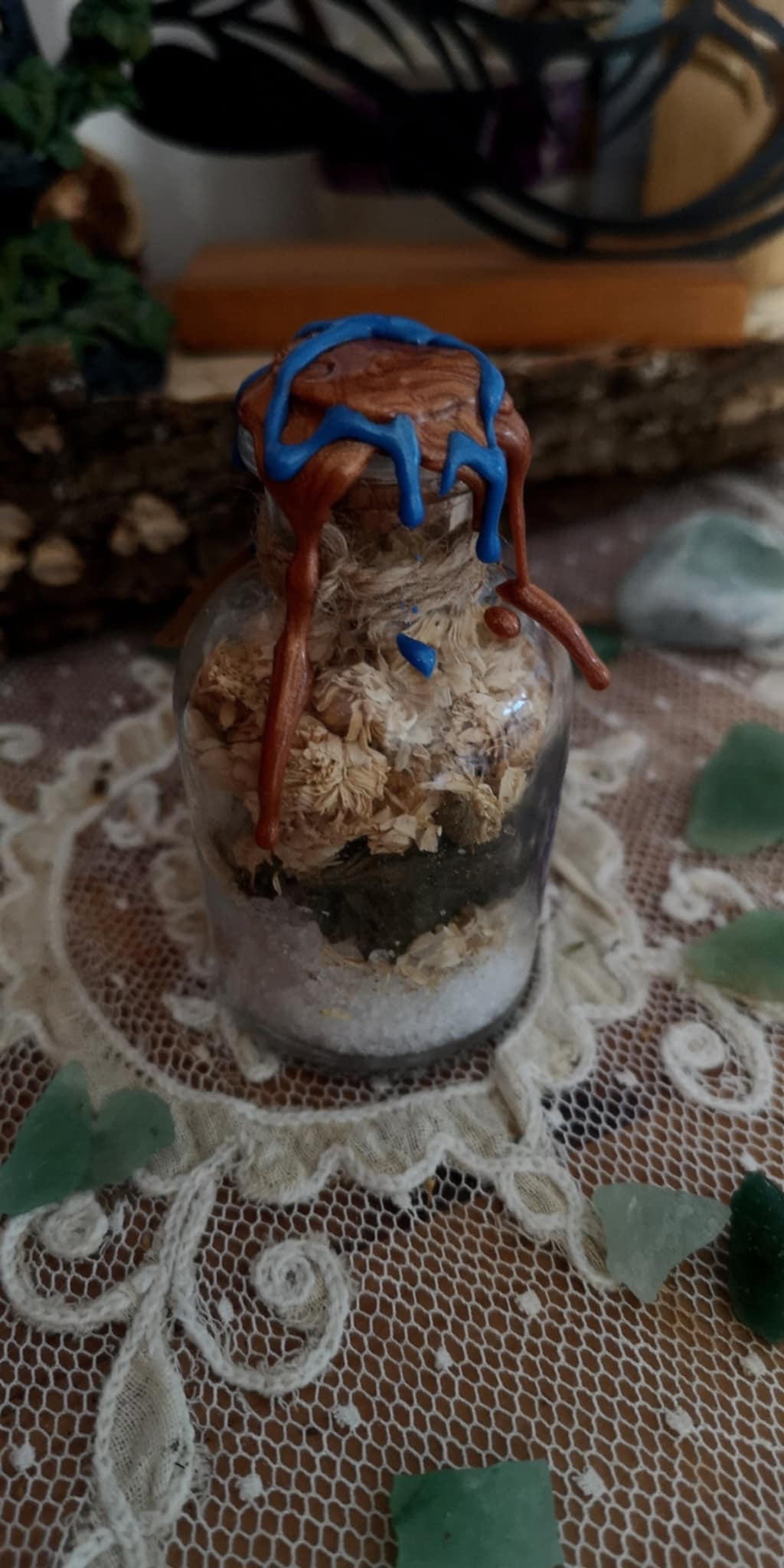 La camomille apporte clarté mentale et paix guerrière, celle qui permet d’agir sans se consumer. L’ortie, plante de Mars et du feu, stimule la vitalité, la confiance et la puissance personnelle. Le sel de Camargue, chargé de l’énergie des marais primaires et du soleil du Sud, purifie, protège et ancre.