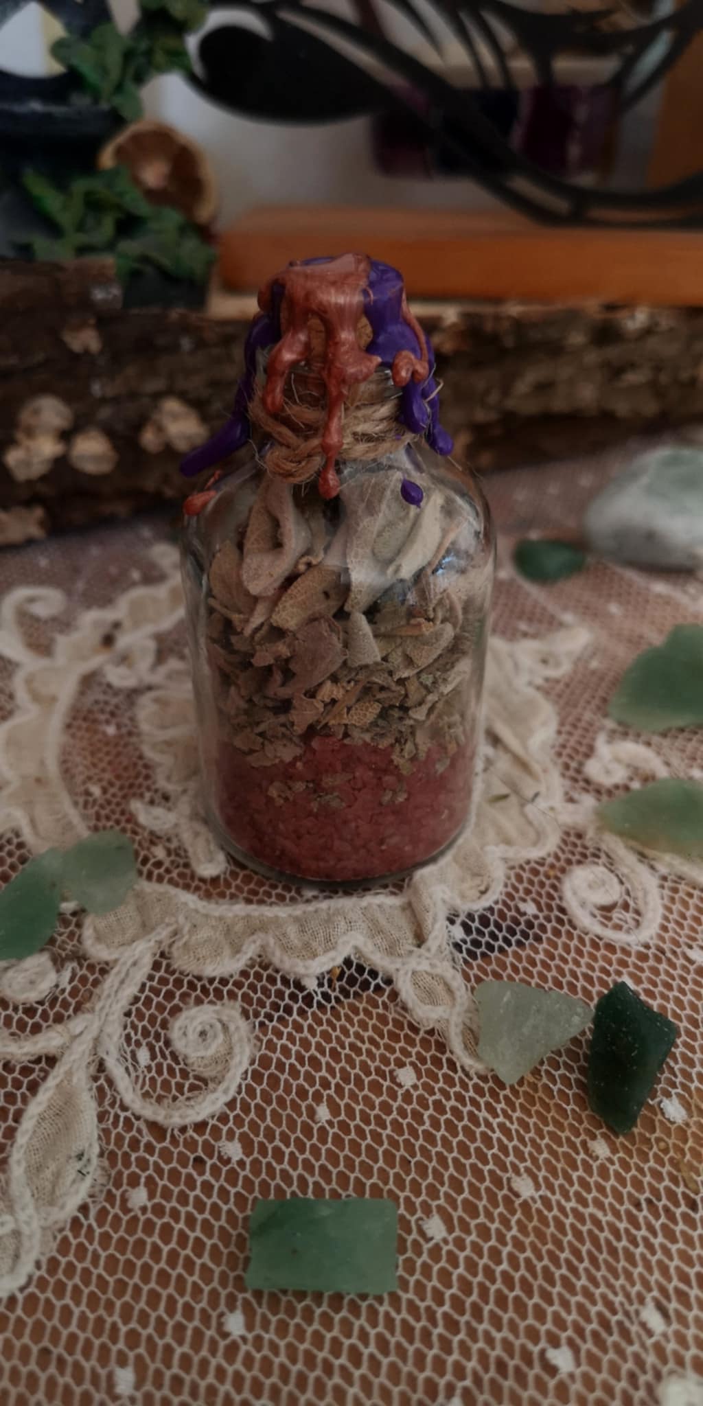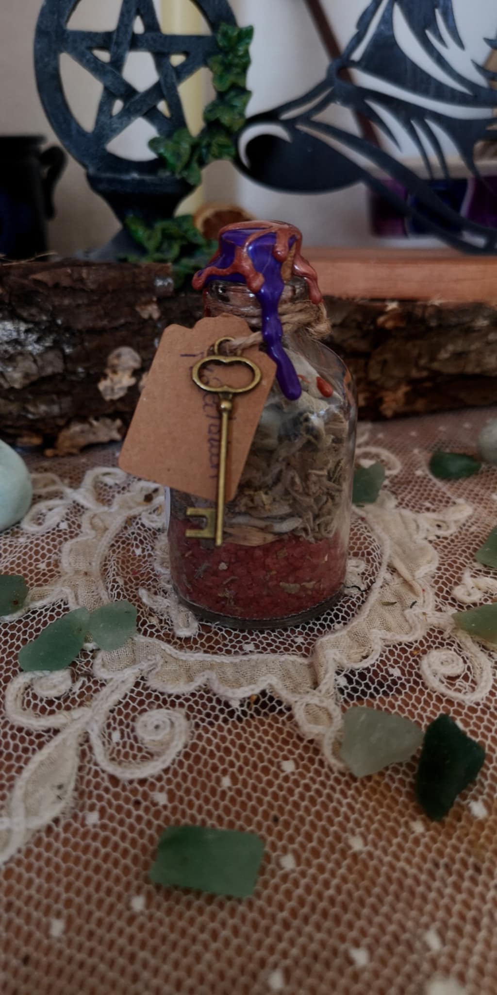 Utilisez cette spell jar comme objet de focalisation pendant votre bain rituel : posez-la en bord de baignoire, versez les ingrédients dans l’eau en formulant votre intention, et laissez la magie du moment opérer.